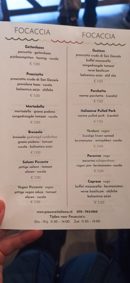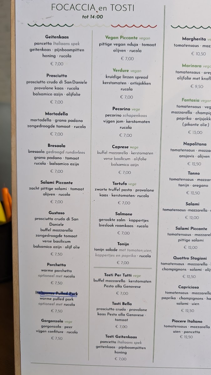 The menu at Piacere Italiano offers a delightful array of Italian-inspired dishes, with a focus on high-quality ingredients and authentic flavors. For a hearty and savory option, the Broodje Porchetta stands out with its perfectly seasoned, tender pork, complemented by a fresh roll that adds a satisfying crunch. The Pizzetta is a great choice for those craving a classic Italian pizza experience in a smaller, more casual form. The Broodje Italiaanse Ham presents a simple yet delicious combination of premium Italian ham nestled in a soft sandwich, ideal for a light lunch. For those with a sweet tooth, the Panna Cotta Citroen offers a refreshing citrus twist on the traditional dessert, providing a perfect end to the meal. The Italiaans Gekruid Pulled Pork is another notable dish, with its flavorful and tender pulled pork seasoned with aromatic Italian herbs, creating a dish that's rich in taste. Each item on the menu is carefully crafted, making Piacere Italiano a go-to spot for those looking to enjoy authentic Italian flavors in the heart of Dordrecht.